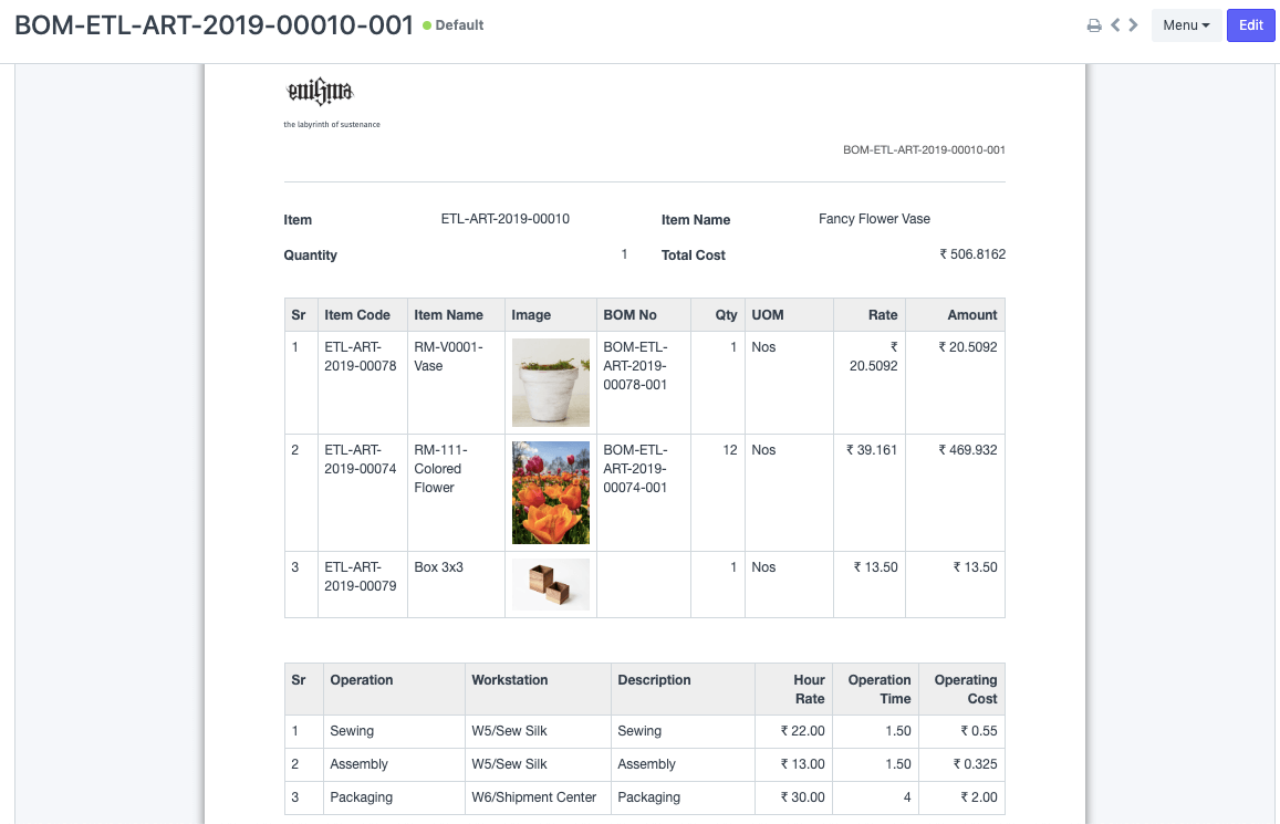 A bill of material is at the heart of any cloud manufacturing software, and a well-defined BOM ensures robustness and accuracy. BOM is hierarchical, with the finished product at the top. It also includes product codes, part descriptions, quantities, costs and additional specifications.