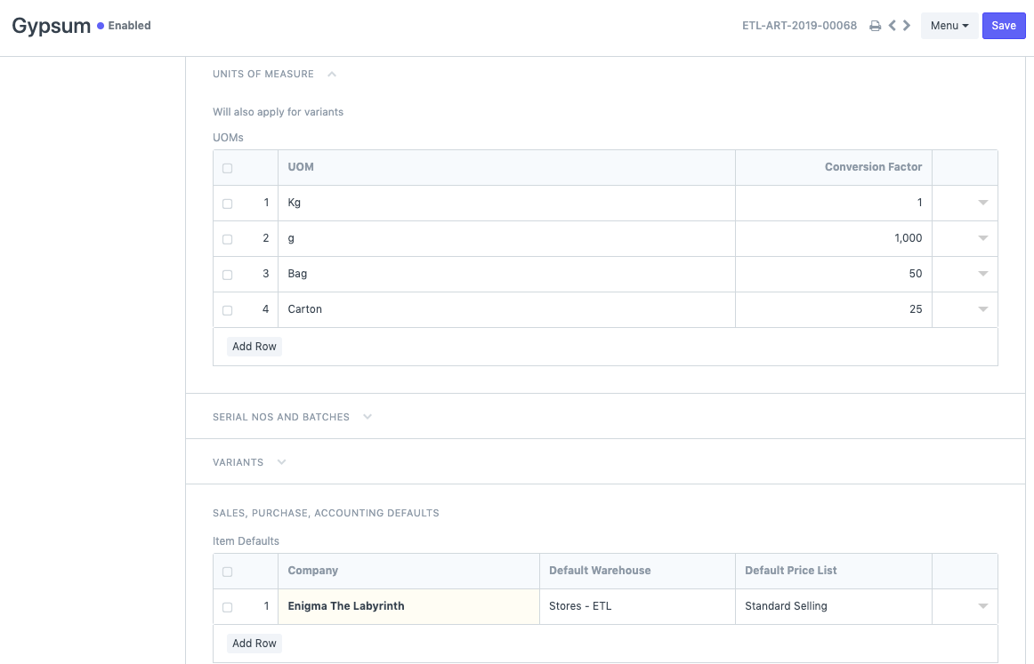 Suppose you produce t-shirts in different sizes and colors. You’ll need to track each type of t-shirt and its variants, known as item variants. In Software, the primary item is stored as an item template, and each of the variations is stored as an item variant. You can store any attribute, such as color or shape, for each item variant.
